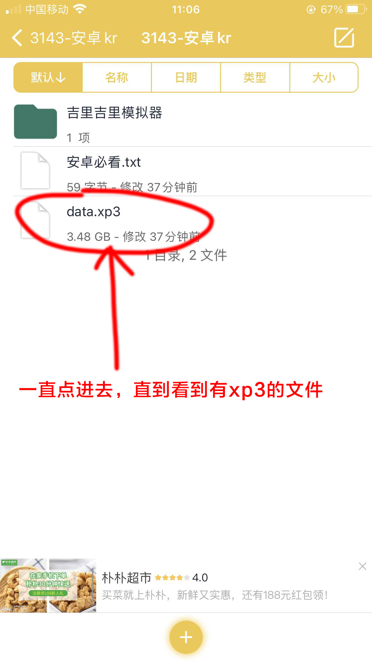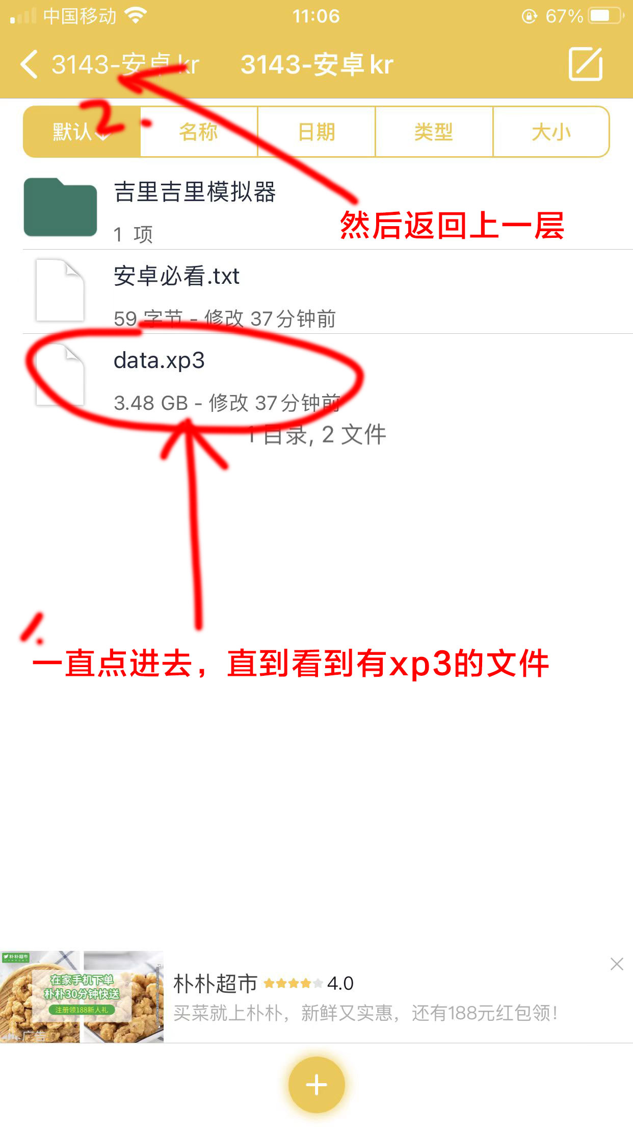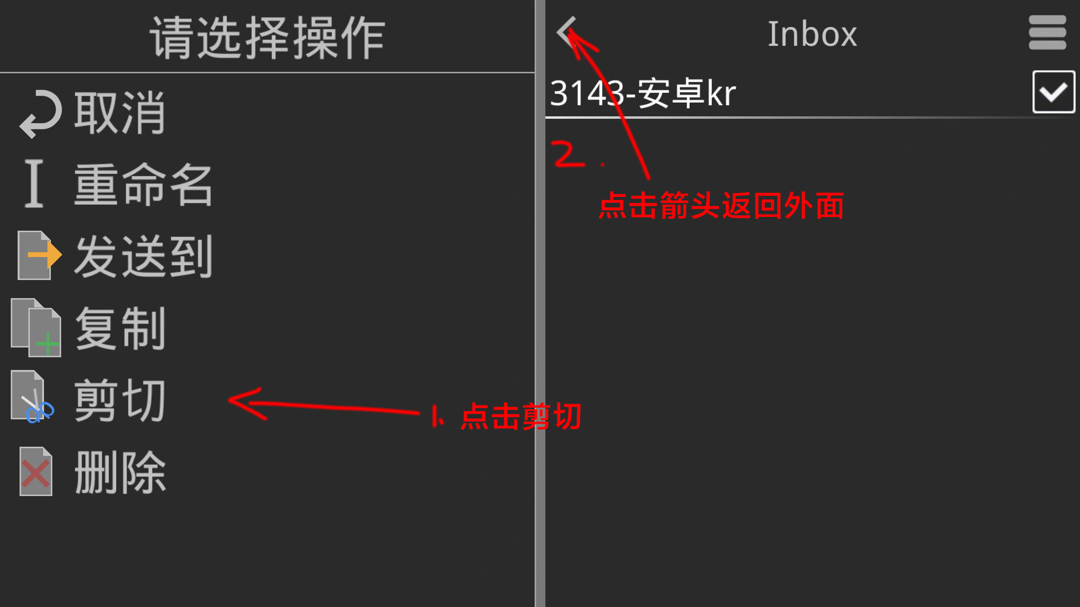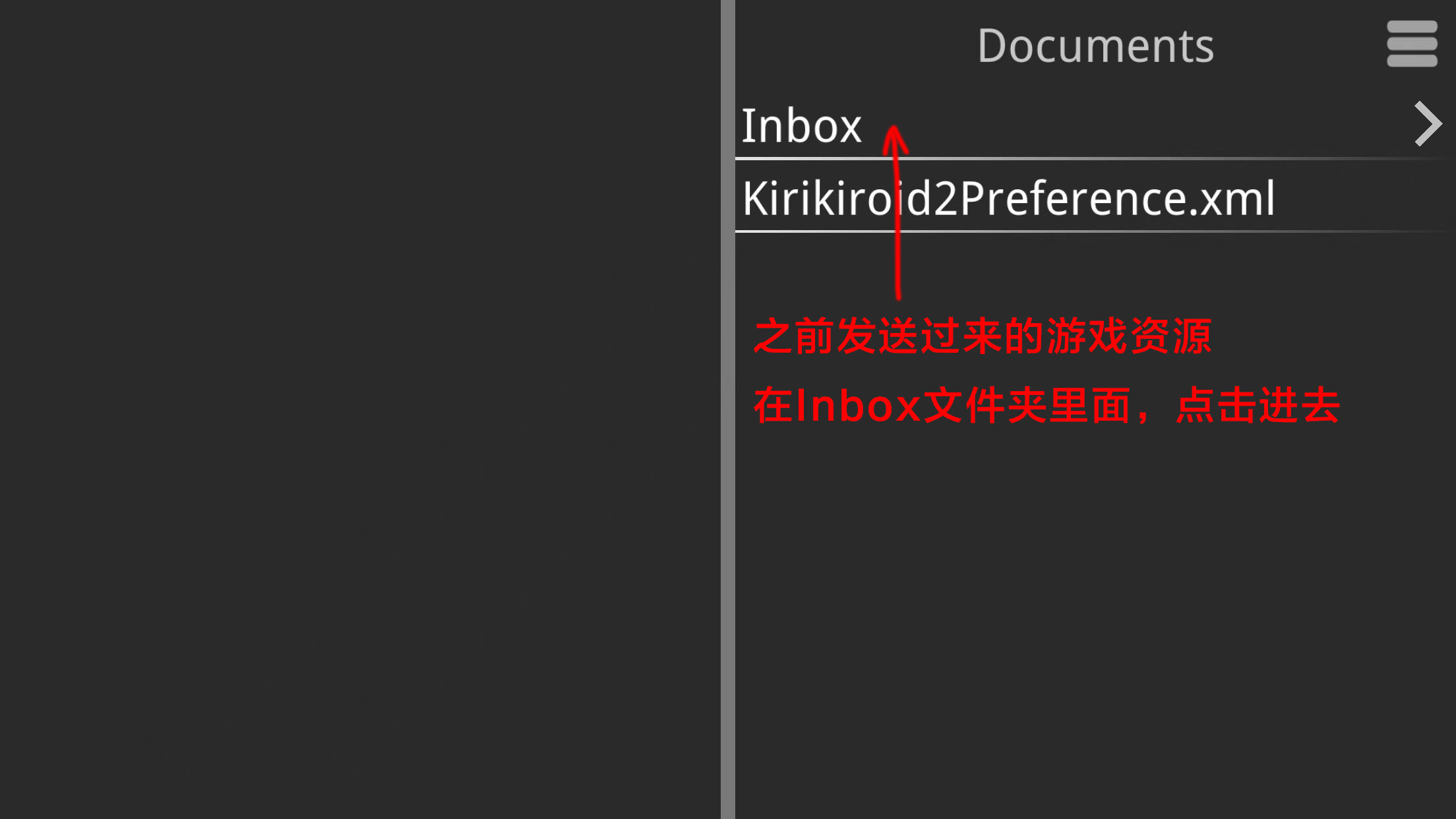 4.返回来之后,我们点Inbox文件夹,发送过的资源默认都会放在这里面,但是我们要进去把资源剪切出来,放在Inbox里面运行会闪退的。